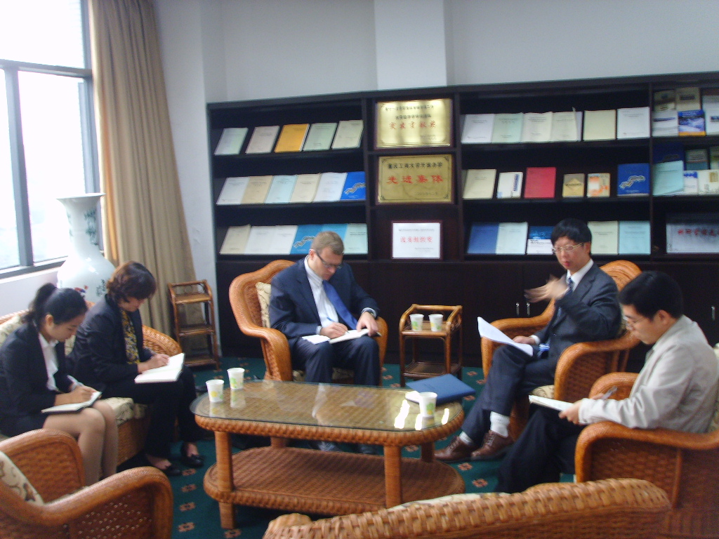 黄志亮副校长首先对安瑞先生的造访表示热烈欢迎,并充分了解对方来访目的。交流中,黄志亮副校长结合详实的数据和丰富个案,从6大方面介绍了重庆2012年1-9月份经济发展情况,包括工业增长快、销售旺盛、旅游业旺盛、金融业增长快、创意产业发展迅速、就业创业活跃等。接下来,黄志亮副校长从8大方面分析了促进重庆经济良性发展的影响因素:(1)重庆经济社会发展战略由国家意志转化为国家行动;⑵工业化、城市化处于加速发展期;⑶重庆直辖15年综合生产能力提升效应显现;⑷统筹城乡综合配套改革效果凸显;⑸“三驾马车”对经济增长的拉动作用明显;⑹区县经济活跃,国内合作加强;⑺空前重视社会和谐和改善民生;⑻持续的生态环境改善和人居环境改善。同时,黄志亮副校长还就安瑞先生关心的重庆“八大投”对重庆发展的作用、民营企业融资、重庆房地产价格等问题作了较为详细回答。