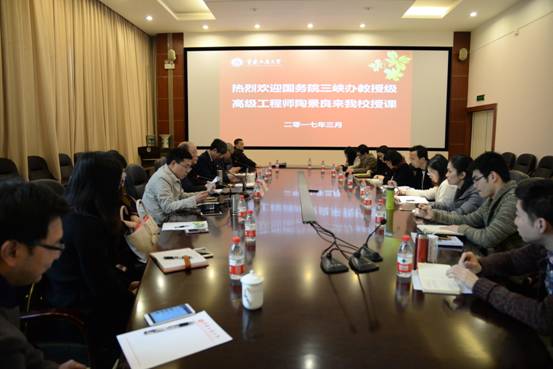 近日,国务院三峡工程建设委员会办公室教授级高工、中央电视台三峡工程大江截流现场直播嘉宾主持人陶景良先生再一次来到122cc太阳集成游戏,在田家炳书院6楼会议室做题为“造福当代 利及千秋——伟大的长江三峡工程”的学术报告。讲座分为上下午两场,由长江上游经济研究中心副主任杨文举教授主持。参加本次学术讲座的人员有:国家社科规划重大招标项目“三峡库区独特地理单元环境-经济-社会发展变化研究”课题组的主研人员、博士生导师、长江上游经济研究中心的专职研究人员、122cc太阳集成游戏经济类专业的博士。
