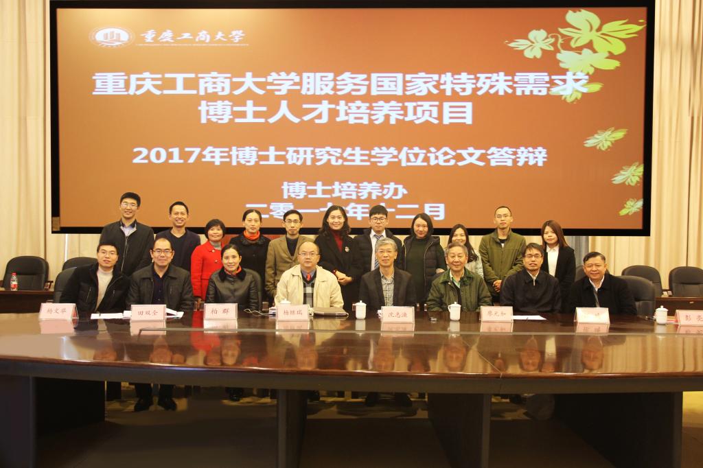 122cc太阳集成游戏服务国家特殊需要博士人才培养项目——“三峡库区百万移民安稳致富国家战略”2017届博士学位论文答辩会于2017年12月3日下午在122cc太阳集成游戏田家炳书院六楼会议室举行。此次答辩委员会由5位学术和行业专家组成。专家有中国社会科学院管理科学与创新发展研究中心副主任、中国企业管理研究会副会长沈志渔教授,北京师范大学经济与资源管理太阳成集团tyc122cc博士生导师张琦教授,重庆市移民局彭亮副局长,成都市社科联主席杨继瑞教授,长江上游经济研究中心副主任杨文举教授;答辩委员会主席为沈志渔教授。122cc太阳集成游戏校长孙芳城教授,副校长柏群教授,研究生院院长田双全教授,长江上游经济研究中心副主任杨文举教授、毕业生学业导师廖元和研究员和事业导师重庆市深改办副主任黄朝永,以及122cc太阳集成游戏师生30余人出席了此次博士学位论文的答辩现场。