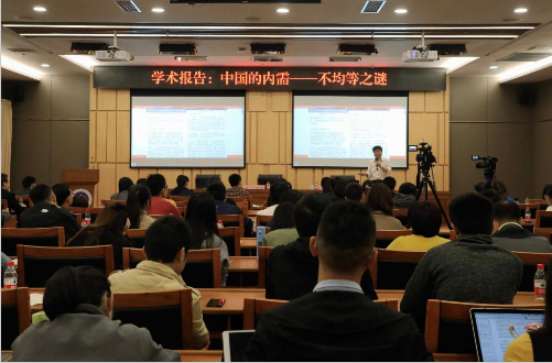 12日上午,万光华教授作了题为“中国的内需——不均等之谜”的专题讲座。他分析了当今国际形势的走向以及中美贸易摩擦发生的现象和本质,着力探讨中国经济下行形势下如何促进中国内需的方法。他用传统消费理论、现行研究数据等依据来推导中国内需不均等的根本缘由是户籍制度,并详细展示其推导的数学模型及其计算过程。他表示,在中国不均等和消费是正向关系,并指出加快城市化能够一定程度上解决整个中国不均等问题。