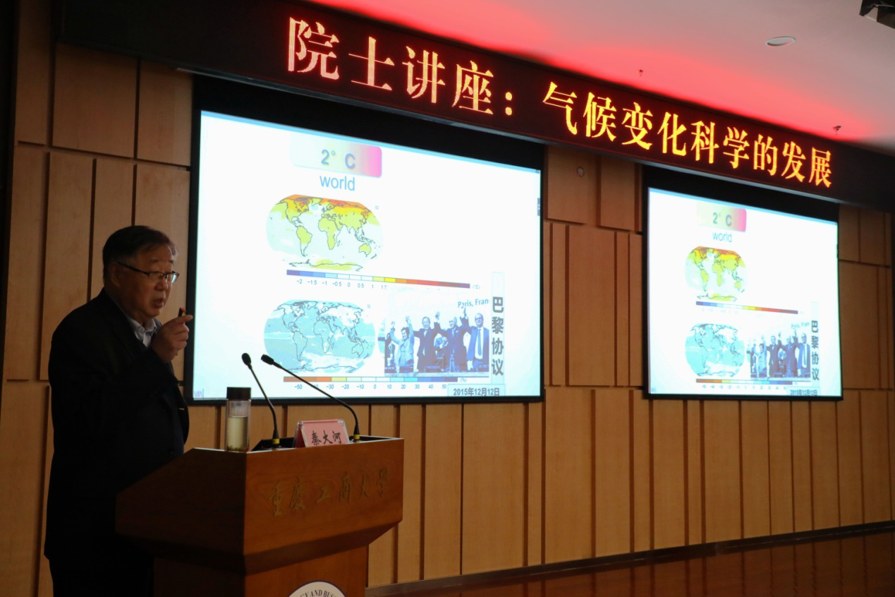 2019年3月5日上午10时,重庆工商大学新图书馆学术报告厅,著名地理学家、中国科学院秦大河院士应邀为重庆工商大学广大师生作了题为《气候变化科学的发展和未来地球计划》的学术讲座,讲座由重庆工商大学副校长苟朝莉主持。