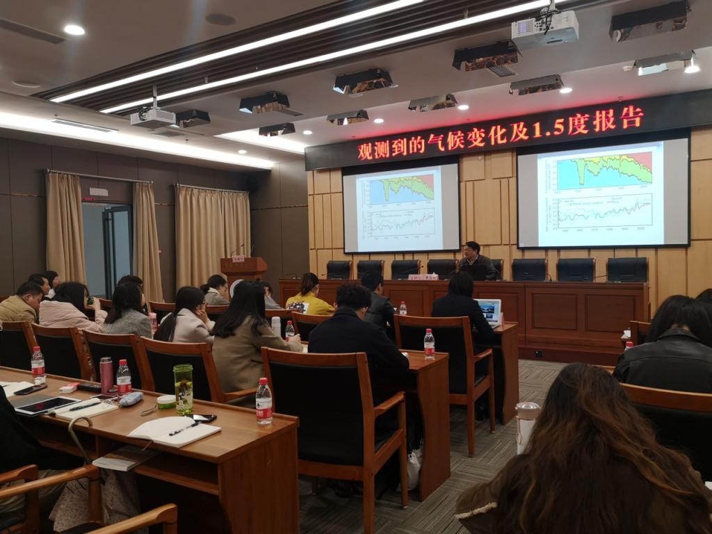 首先,翟盘茂教授就IPCC第六次评估报告的最新进展以及《全球1.5℃增暖特别报告》的主要内容做了详细阐释,使我们对全球气候变暖问题有了更为深刻的认识。报告认为:“自从工业化以来,人类活动已经引起了全球大约1度的增暖,并已经对人类、自然和生计造成影响,按目前的增暖速率,预计在2030—2052年之间达到1.5℃”。最后,翟盘茂教授发出“对中国而言,面临经济发展与不断加大的应对气候变化的压力,如何积极应对?”的问题,引发大家的积极思考。应对人类活动引起的全球气候变化需要全社会深刻而快速的转型,需要大家改变自己的生活方式做起,节约能源,保护我们共同的地球家园。