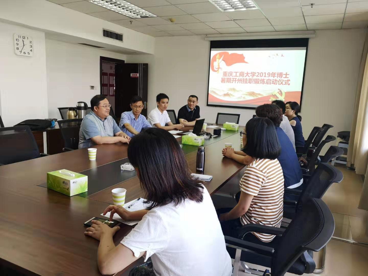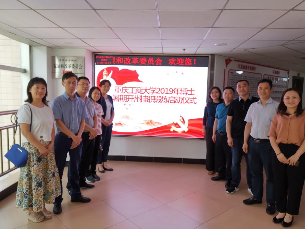 2019年7月10日,重庆工商大学2019年博士暑期社会实践启动仪式在重庆市开州区发展和改革委员会会议室顺利举行。开州区发展改革委主任陈逢春、重庆工商大学经济学院分党委书记王小玲、开州区各部门指导老师、研究生辅导员高娟和参加2019年开州暑期挂职锻炼的全体博士参加了本次启动仪式。