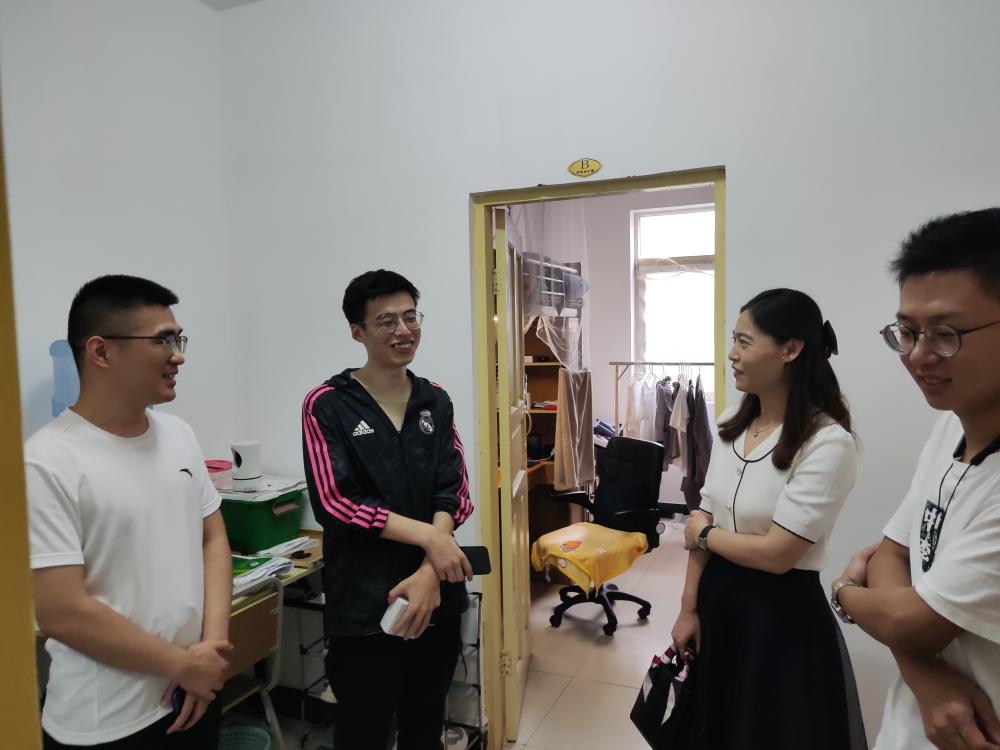 李颖慧副教授与留校研究生亲切交谈,并为同学们送上中秋月饼的慰问礼物,了解同学们最近学习和生活情况,倾听大家在留校期间关于学习和生活的需要和困难,叮嘱同学们要严格遵守和积极配合疫情防控相关要求,做好疫情防控形式下自我管理和自我监督,要认真上好网课、加强身体锻炼;并详细的对毕业年级进行了有关就业选择方面问题的指导与分析,叮嘱毕业年级同学要抓住秋招的黄金时期,多关注就业招聘信息,为早日签约心仪工作而努力。