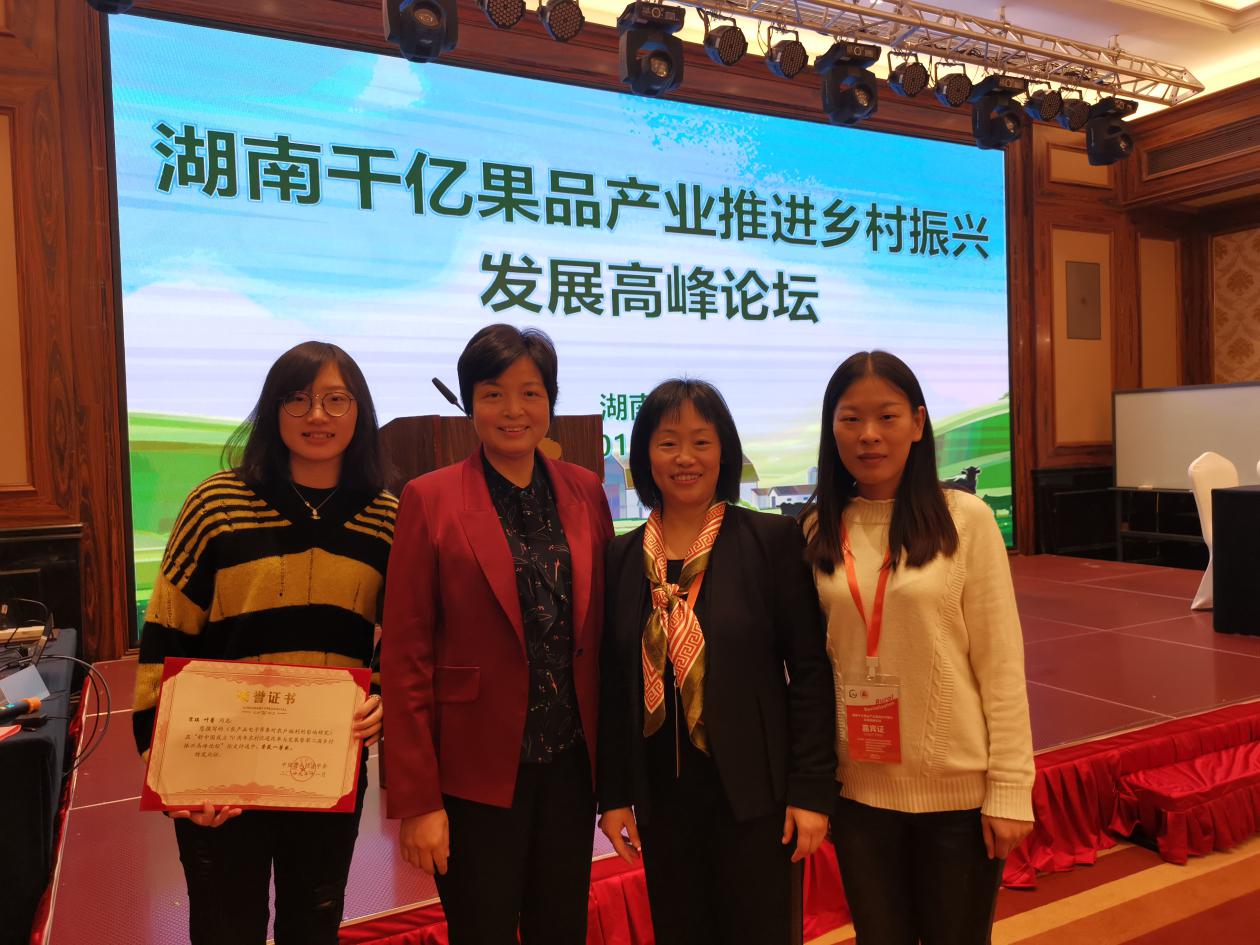 团队师生代表于论坛当日发表了乡村振兴主题演讲,基于农产品电子商务与农户福利的协同关系与全国各兄弟院校研究者、湖南省领导展开友好的交流与讨论。其成果与演讲内容获得全国贸易经济教学研究会副会长李定珍教授高度认同。