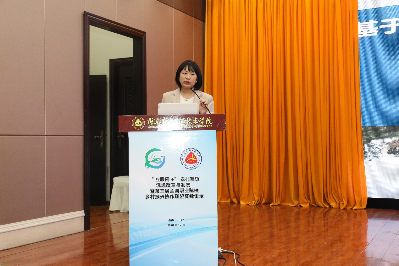 2020年12月5日,由中国商业经济学会主办,全国职业院校乡村振兴协作联盟、湖南省农村合作经济组织联合会、湖南省供销合作经济学会、湖南商业经济学会、湖南省现代流通理论研究基地、湖南商务职业技术学院联合承办的“‘互联网+’农村商贸流通改革与发展暨第三届乡村振兴高峰论坛”在湖南长沙成功举行。中华全国供销合作总社理事会常务理事、科教社团部部长李殿平,湖南省供销合作总社党组书记、理事会主任刘湘凌,湖南省教育厅副厅长王仁祥,湖南省民政厅社会组织管理局副局长张再祥,中国商业经济学会会长马龙龙、全国贸易经济教学研究会会长王晓东以及来自中国人民大学、重庆工商大学、湖南工商大学、吉首大学、青岛理工大学等多个机构和院校的领导、专家、学者200多人出席大会。