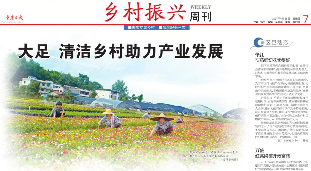 大足区在实施乡村振兴战略中,以开展村庄清洁行动为抓手,集中整治村庄环境脏乱差,聚焦农村“厕所革命”、农村生活垃圾治理、农村生活污水治理、村容村貌提升、农业生产废弃物资源化利用、村规划编制引领六项重点任务,创造干净整洁的人居环境,以清洁乡村助力特色产业发展。