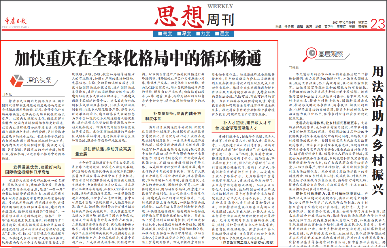 (作者系重庆工商大学副校长、长江上游经济研究中心常务副主任、教授)