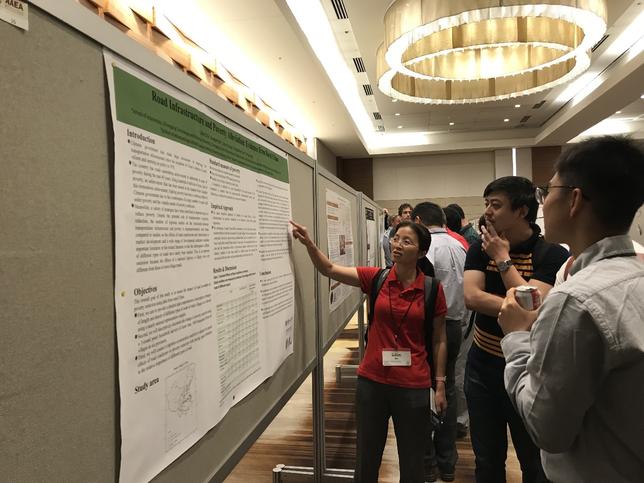 中心新发展理念下区域经济理论与实践研究团队负责人朱莉芬研究员作为该学会会员之一,在本次会议上做了研究论文的展示和交流,论文基于农户调研数据和高德地图交通数据,建立计量经济模型,实证分析了中国农村道路交通设施对农村减贫的影响。该研究论文引起了诸多学者的兴趣和深入讨论。
