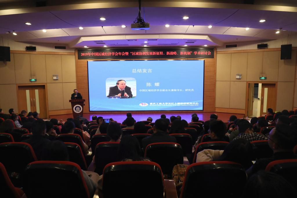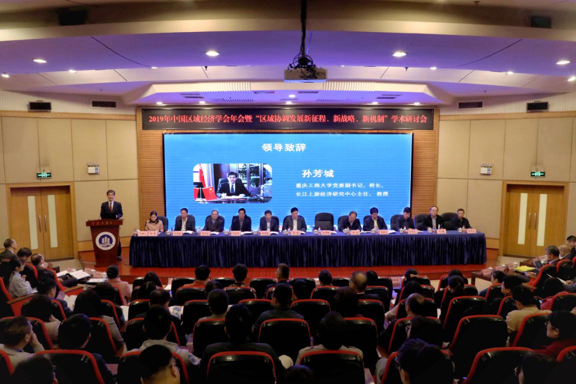 11月15日-16日,2019年中国区域经济学会年会暨“区域协调发展新征程、新战略、新机制”学术研讨会在122cc太阳集成游戏召开,来自中国社会科学院、武汉大学、四川大学、中央民族大学、湖南大学、西南财经大学、中央财经大学、湖北省社会科学院、河南省社会科学院等各地科研院所、高校、党校行政学院、政府机构和企业的专家学者、政府官员及媒体记者共300多人参加了本次研讨会,并邀请了《中国工业经济》《中国高校社会科学》《改革》《经济学家》《当代经济研究》《财经科学》《经济纵横》《经济与管理研究》《宏观质量研究》《软科学》《经济与管理评论》《区域经济评论》《西部论坛》多家学术期刊参会交流。本次年会由中国区域经济学会、重庆工商大学长江上游经济研究中心主办,重庆市人文社会科学重点研究基地重庆工商大学区域经济太阳成集团tyc122cc、重庆市人文社会科学重点研究基地重庆工商大学产业经济太阳成集团tyc122cc承办,由中国社会科学院西部发展研究中心、重庆市区域经济学会、区域经济评论杂志社、改革杂志社、《西部论坛》编辑部协办。