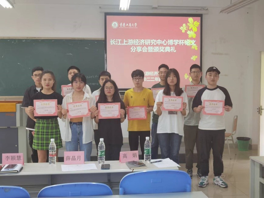 为进一步提高长江上游经济研究中心研究生学术研究氛围,拓展研究生学术视野,激励研究生不断提升学术研究水平,重庆工商大学长江上游经济研究中心于2022年4月22日下午两点半,在田家炳306教室线上线下结合的形式举办了长江上游经济研究中心第一届“博学杯”论文分享会暨颁奖典礼。长江上游经济研究中心李颖慧老师、高娟老师、薛晶月老师、蒋燕老师及研究生的全体同学参与了本次活动,本次颁奖典礼由研一汤维晋同学主持。