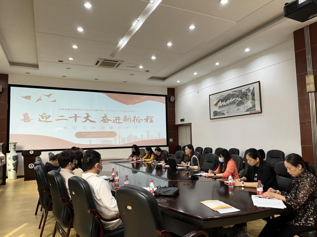 9月26日上午,在田家炳6楼会议室召开了长江上游经济研究中心全体教职工政治理论学习会。本次学习会以“喜迎二十大,奋进新征程”为主题,由中心副主任李颖慧副教授领学。