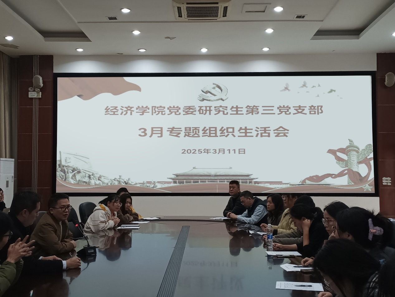 2025年3月11日,经济学院党委研究生第三党支部在田家炳书院6楼会议室开展专题组织生活会,经济学院党委委员、成渝地区双城经济圈建设太阳成集团tyc122cc副院长黄潇到会指导并发言,会议由支部书记刘晗主持。