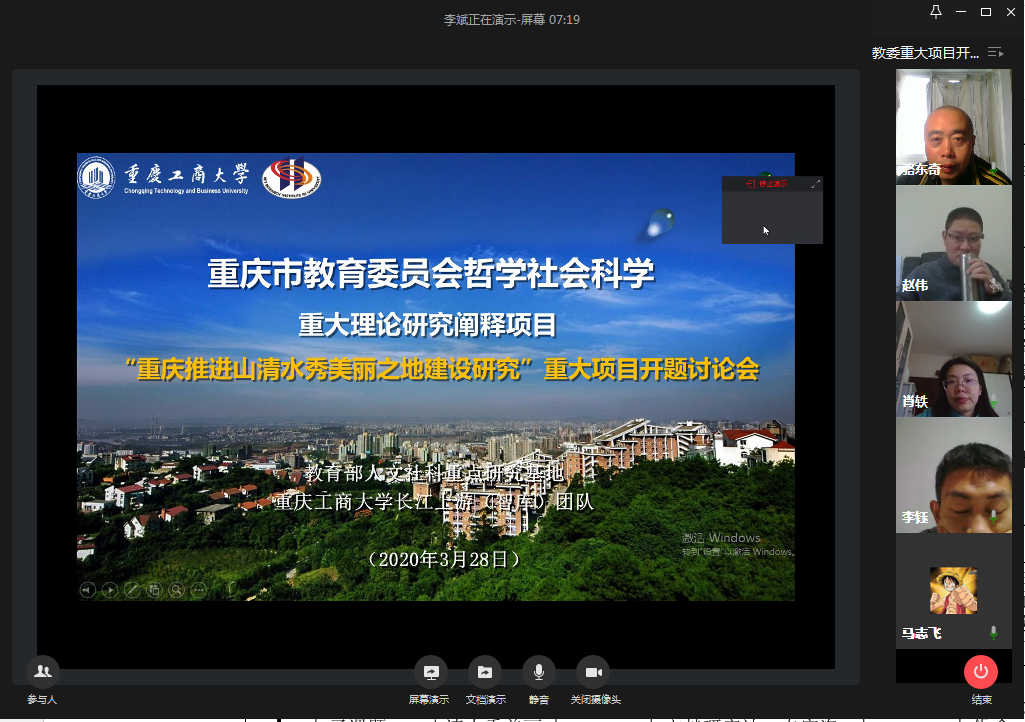 3月29日上午长江上游经济研究中心乡村振兴创新团队负责人、市教委哲学社会科学重大理论研究阐释项目首席专家骆东奇教授主持的重庆市教育委员会哲学社会科学重大理论研究阐释项目“重庆推进山清水秀美丽之地建设研究”利用在线网络平台进行内部开题论证会,项目和团队成员李斌老师、肖轶博士、赵伟博士、蔡进博士、马志飞博士、龚杰博士、李钰博士、白佳飞博士、石永明老师等参加了项目开题内部讨论会。