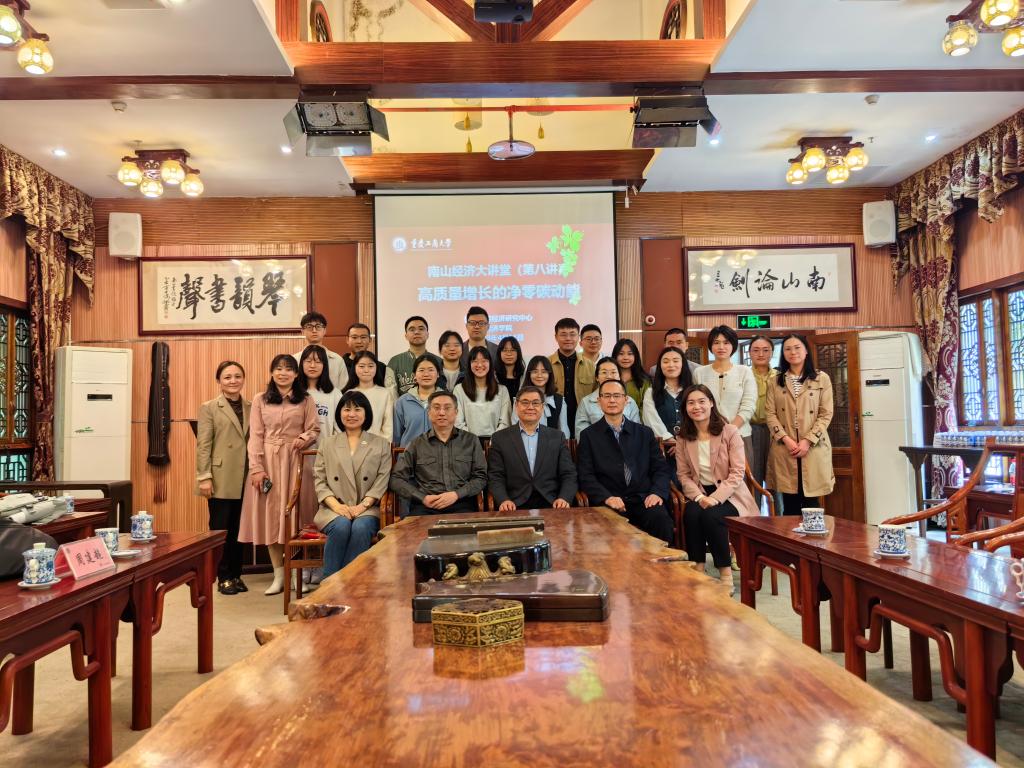 2023年4月11日,由重庆工商大学长江上游经济研究中心和经济学院联合举办的南山经济大讲堂第八讲在南山书院进行。本次主讲专家邀请到中国社会科学院部委员、中国社会科学院大学博士生导师、长江上游经济研究中心学术委员潘家华教授,讲座的主题为 “高质量增长的净零碳动能”。122cc太阳集成游戏经济学院院长宋瑛教授、研究生院副院长曾胜教授、中心副主任李颖慧副教授、两江学者谢新教授及中心、学院部分师生参加了本次讲座。