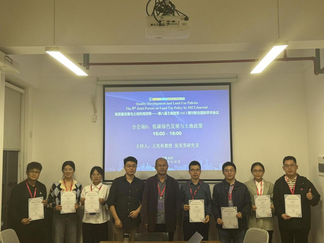 第八分论坛主题为“低碳绿色发展与土地政策”,来自中国科学院、浙江大学、东北大学、中国矿业大学等8位学者分别围绕“资源城市土地利用转型”“农业社会化服务与绿色发展”“城市产业群生态可持续利用”“全球太阳能项目与粮食安全”“环境规制与城市创新不平等”等问题进行交流发言,会议氛围热烈。随后,王兆林教授做总结,他指出此次分论坛具有“三个多”特点,一是多维度,专家学者分别从全球、中国和区域尺度分享了低碳与绿色发展主题;二是多视角,专家学者分别从政府治理、公众参与与社会资本视角分析了绿色低碳治理路径;三是多场景,专家学者基于技术手段,分别围绕不同的经济社会发展目标下低碳与绿色发展路径。最后,王兆林教授受组委会委托为分论坛专家学者颁发了参会证书。