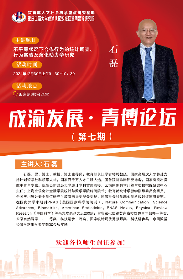 主讲题目:不平等状况下合作行为的统计调查、行为实验及演化动力学研究