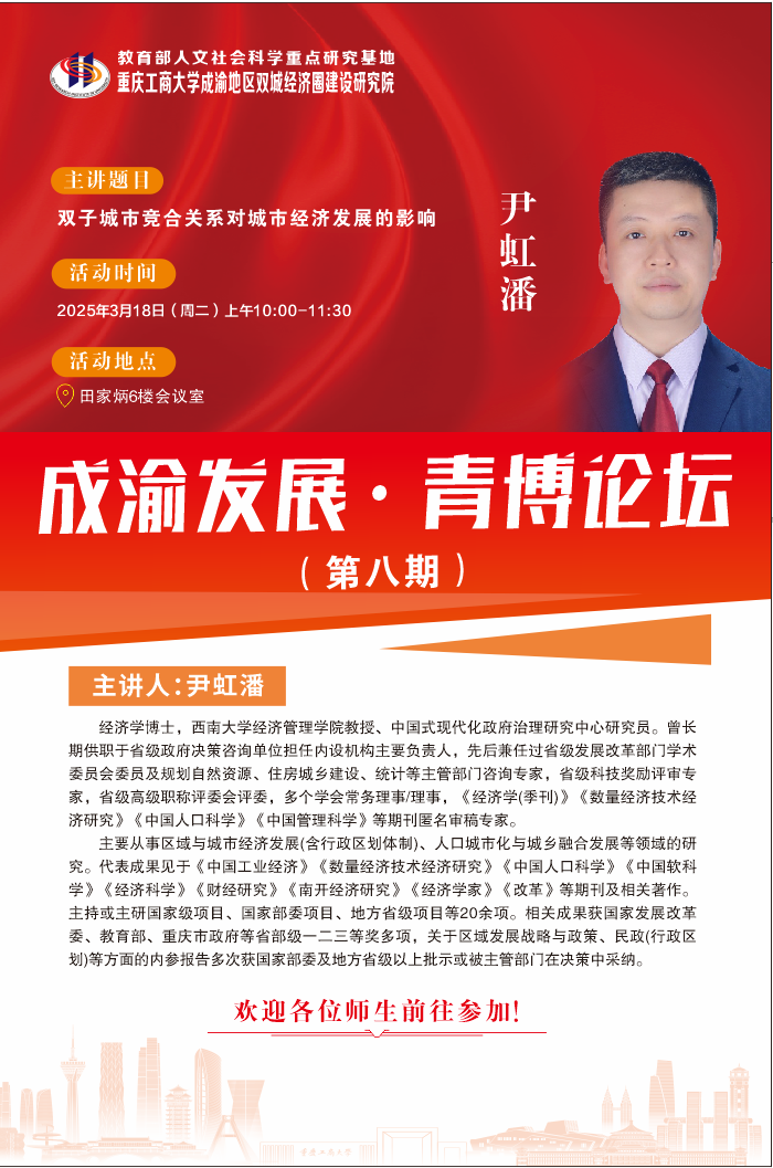主讲题目:双子城市竞合关系对城市经济发展的影响