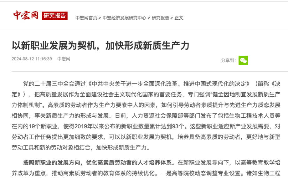 以新职业发展为契机,加快形成新质生产力