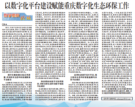 以数字化平台建设赋能重庆数字化生态环保工作
