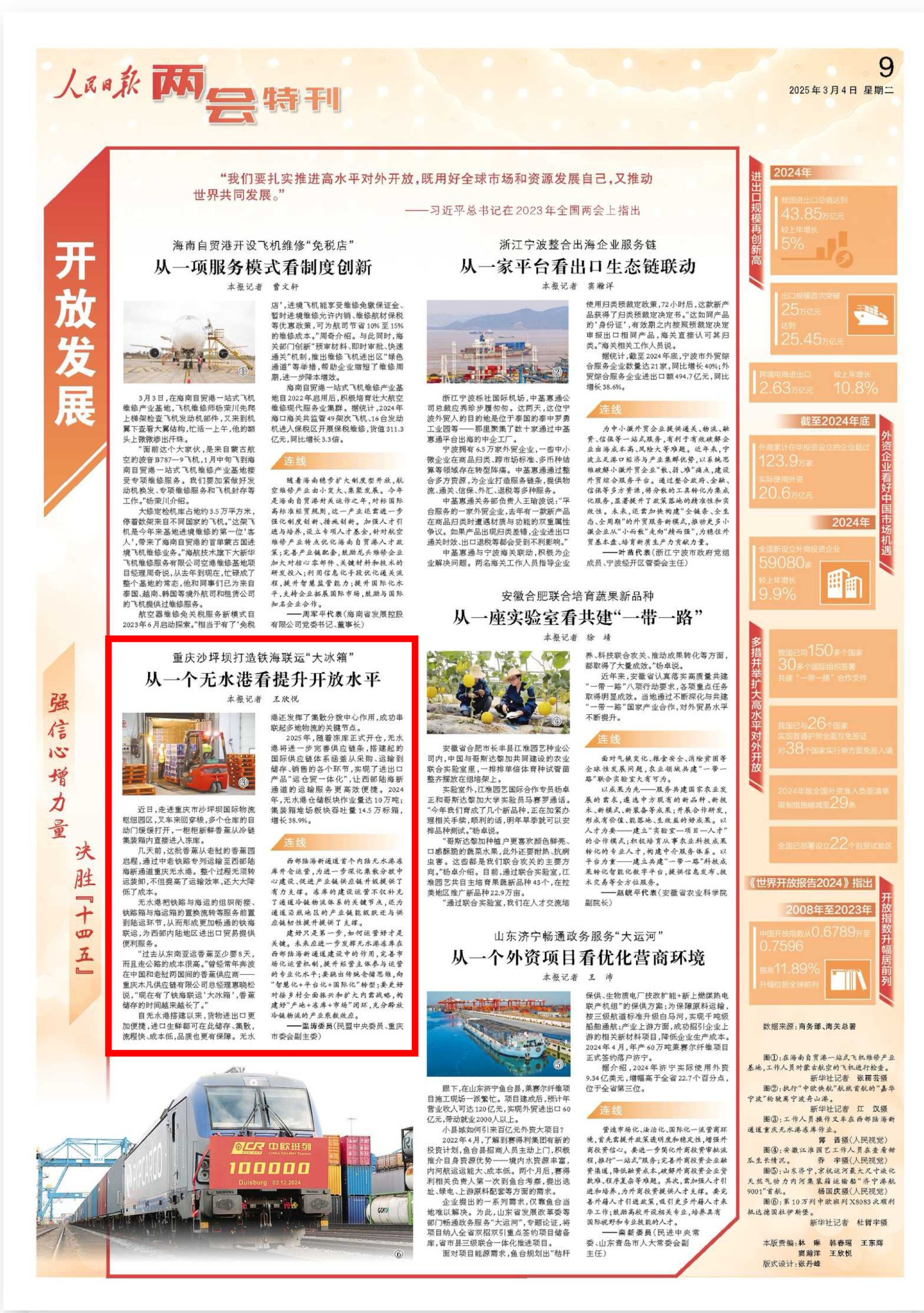 无水港把铁路与海运的组织衔接、铁路箱与海运箱的置换流转等服务前置到陆运环节,从而形成更加畅通的铁海联运,为西部内陆地区进出口贸易提供便利服务。