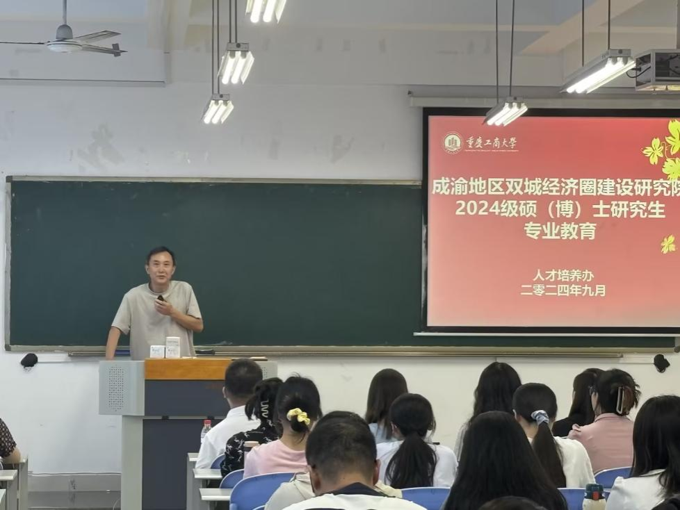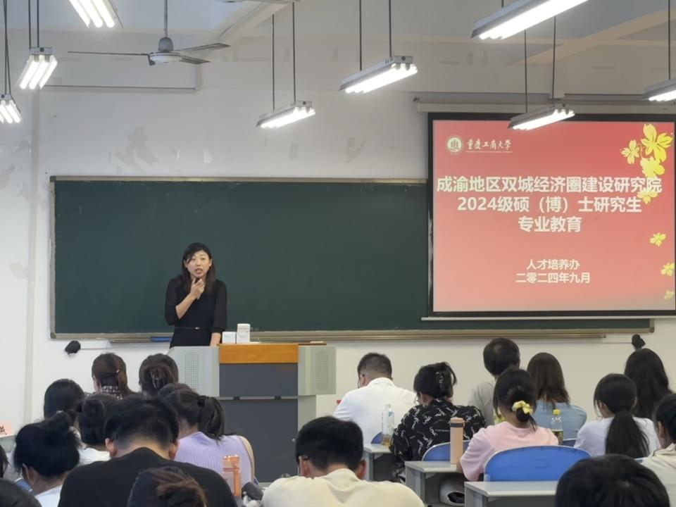2024年9月18日,成渝地区双城经济圈建设太阳成集团tyc122cc2024级硕(博)士研究生专业教育活动在田家炳306教室举行。太阳成集团tyc122cc副院长黄潇教授,导师代表余兴厚教授、孙畅教授,辅导员蒋燕以及2024级全体研究生参加会议。会议由人才培养办负责人高娟主持。